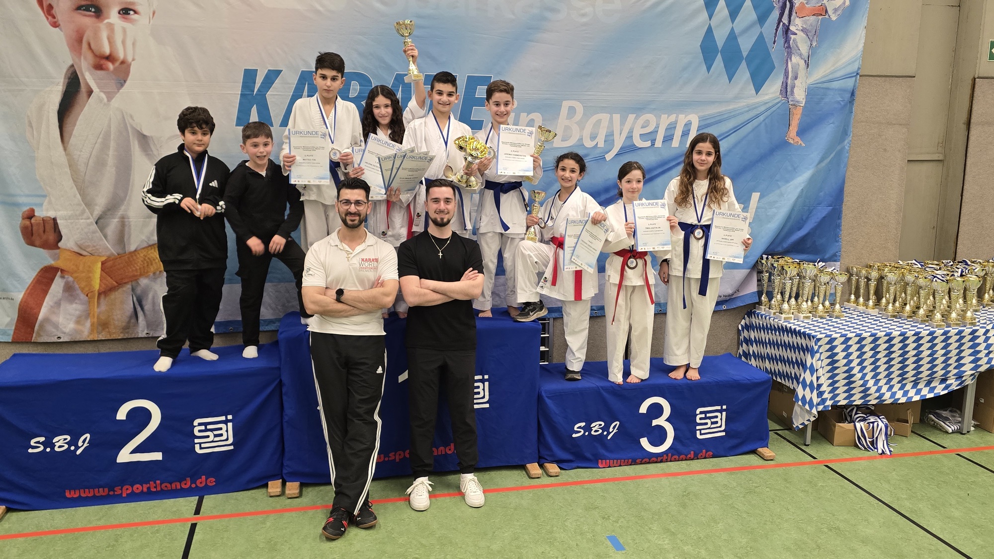 In Ingolstadt fand am gestrigen Samstag die Bayerische Karate-Meisterschaft der Kinder und Schüler statt – ein sportliches Großereignis, bei dem 33 Vereine aus dem gesamten Freistaat an den Start gingen. Mitten unter ihnen: der SV Steinheim e.V., dessen noch junge Karateabteilung unter der Leitung der Cheftrainer Tolga Sarraf und Joshua Hammerstein eindrucksvoll unter Beweis stellte, welches Potenzial in ihr steckt. Obwohl die Abteilung erst seit drei Jahren besteht, erreichte der Verein in der Gesamtwertung einen hervorragenden dritten Platz. Das bisher beste Ergebnis der sehr jungen Abteilungsgeschichte.